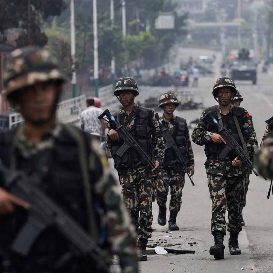 নেপালের প্রধানমন্ত্রী কেপি শর্মা ওলির ইস্তফার পরও পরিস্থিতি স্বাভাবিক হয়নি। শাসনভার এখন হাতে নিয়েছে সে দেশের সেনাবাহিনী। রাজধানী কাঠমান্ডুসহ বিভিন্ন জেলায় রাস্তায় টহল দিচ্ছে সেনা। দেশে দ্রুত স্থিতি ফেরাতে সেনার তরফে সর্বত্র জারি করা হয়েছে কার্ফু।বুধবার সকাল থেকে বড় ধরনের কোনও অশান্তি না ঘটলেও বিক্ষিপ্ত সংঘর্ষের খবর মিলেছে। সংবাদমাধ্যম সূত্রে জানা গিয়েছে, বাঁকে জেলার সংশোধনাগারে সংঘর্ষে পাঁচ জনের মৃত্যু হয়েছে। আনুষ্ঠানিক বিবৃতি দিয়ে সেনাবাহিনী জানিয়েছে, নতুন সরকার গঠন না হওয়া পর্যন্ত তারাই নেপালের শাসনভার সামলাবে।গত কয়েকদিন ধরেই ছাত্র-যুব আন্দোলনে উত্তেজনা ছড়িয়েছিল দেশজুড়ে। সোমবার ও মঙ্গলবার দফায় দফায় সংঘর্ষ হয় বিক্ষোভকারীদের সঙ্গে পুলিশের। কাঠমান্ডু থেকে শুরু হওয়া বিদ্রোহ দ্রুত ছড়িয়ে পড়ে নেপাল জুড়ে। হাজার হাজার মানুষ রাস্তায় নেমে আসেন স্লোগান ও প্ল্যাকার্ড হাতে।অভিযোগ, মঙ্গলবার সকাল থেকে পরিস্থিতি ভয়াবহ আকার নেয়। বিক্ষোভকারীরা নেপালের পার্লামেন্ট ভবন, প্রধানমন্ত্রী ওলির সরকারি বাসভবন ও একাধিক মন্ত্রীর বাড়িতে আগুন ধরিয়ে দেয়। এমনকি সে দেশের সুপ্রিম কোর্টেও অগ্নিসংযোগের খবর পাওয়া গিয়েছে।পরিস্থিতি নিয়ন্ত্রণে সর্বাত্মক চেষ্টা চালাচ্ছে সেনাবাহিনী। তবে কবে নাগাদ রাজনৈতিক স্থিতি ফিরবে, তা নিয়ে অনিশ্চয়তা রয়ে গেছে।