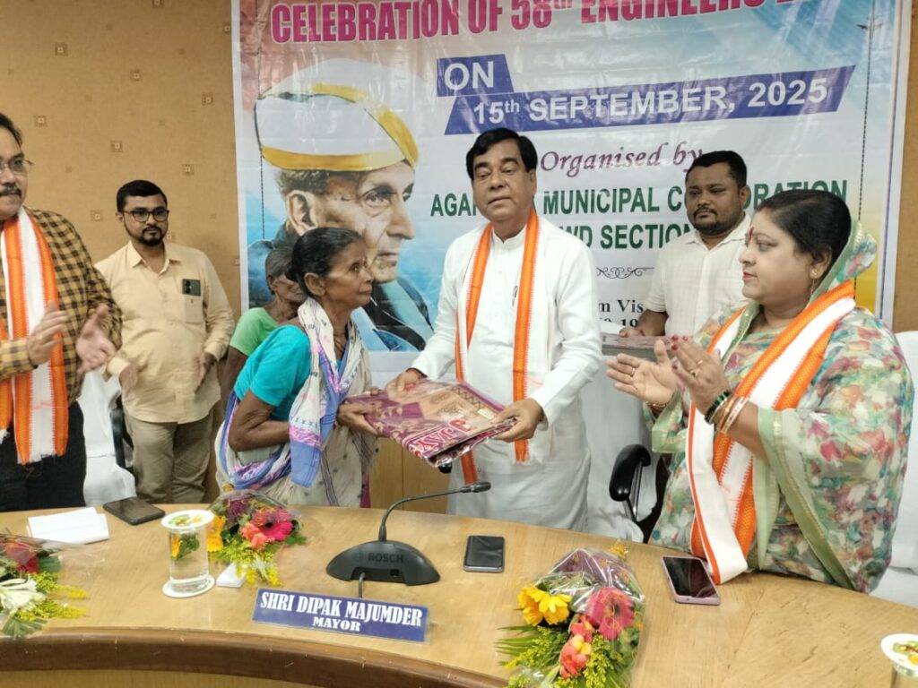 গোটা দেশের সাথে রাজ্যে ও পালিত হলো ৫৮ তম প্রকৌশলী দিবস। সোমবার আগরতলা পূর নিগমের সমস্ত ইঞ্জিনিয়ারদের উদ্যোগে পালিত হলো এই দিবসটি। এদিন পড়ন্ত দুপুরে পুর নিগমের কনফারেন্স হলে দারুন এক পরিবেশের মধ্যে দিয়ে পালিত হলো ৫৮ তম ইঞ্জিনিয়ারিং দিবস। এতে প্রধান অতিথি হিসেবে উপস্থিত ছিলেন পুর নিগমের মেয়র দীপক মজুমদার। সঙ্গে ছিলেন ডেপুটি কমিশনার সুব্রত ভট্টাচার্য, সুপারিনটেনডেন্ট ইঞ্জিনিয়ার সুজয় চৌধুরী, একজিকিউটিভ ইঞ্জিনিয়ার জয়দেব চক্রবর্তী সহ বেশ কয়েকজন মহিলা কর্পোরেটররা। করপোরেটররা হলেন সম্পা সেন, রত্না দত্ত, জয়া ধানুক, শান্তনা সাহা।সঙ্গে ছিলেন পুর নিগমের সমস্ত ইঞ্জিনিয়াররা। অনুষ্ঠানে মুল কেন্দ্রবিন্দু ছিলো প্রকৌশলী দিবসকে ঘিরে পুর নিগমের ইঞ্জিনিয়ারদের সামাজিক দায়বধ্যতা। এদিন পুর নিগমের কনফারেন্স হলে দুঃস্থ মহিলাদের মধ্যে করা হলো বস্ত্র বিতরণ। একই সঙ্গে বেশ কিছু অনাথ শিশুদের মধ্যে স্কুলের ব্যাগ বিতরণ করা হলো। মেয়র সাহেব সহ উপস্থিত প্রত্যেক অতিথিরা একে একে মহিলা এবং শিশুদের হাতে বস্ত্র ও ব্যাগ তুলে দিলেন। বক্তব্য রাখতে গিয়ে মেয়র সাহেব, এই দিবসটির তাৎপর্য সবার সামনে তুলে ধরলেন। একই সঙ্গে দেশ তথা রাজ্যের ইঞ্জিনিয়ারদের ও ভুয়সী প্রশংসা করলেন। পুজোর প্রাক মুহূর্তে আগরতলা পূর নিগমের ইঞ্জিনিয়ারদের এই আয়োজনের প্রশংসা করলেন সকলেই।